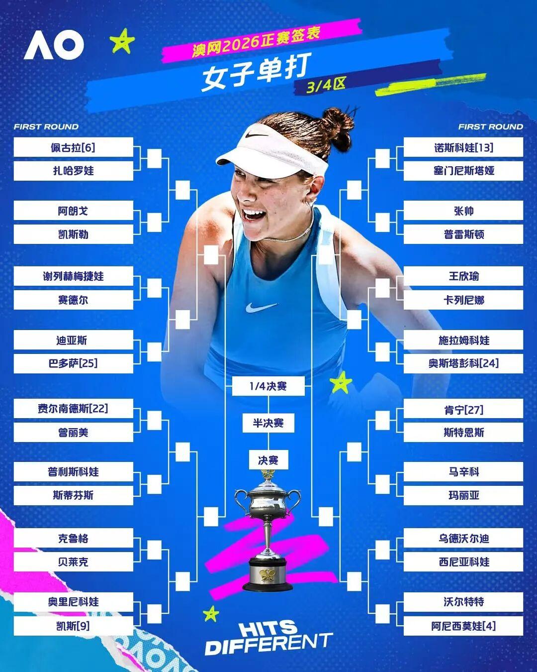 刚刚拿下布里斯班冠军的萨巴伦卡在半决赛前的潜在晋级之路:拉齐纳、帕夫柳琴科娃、拉杜卡努、陶森、保利尼,对于总能在澳洲表现优异的她来说,感觉不是什么太大的问题。